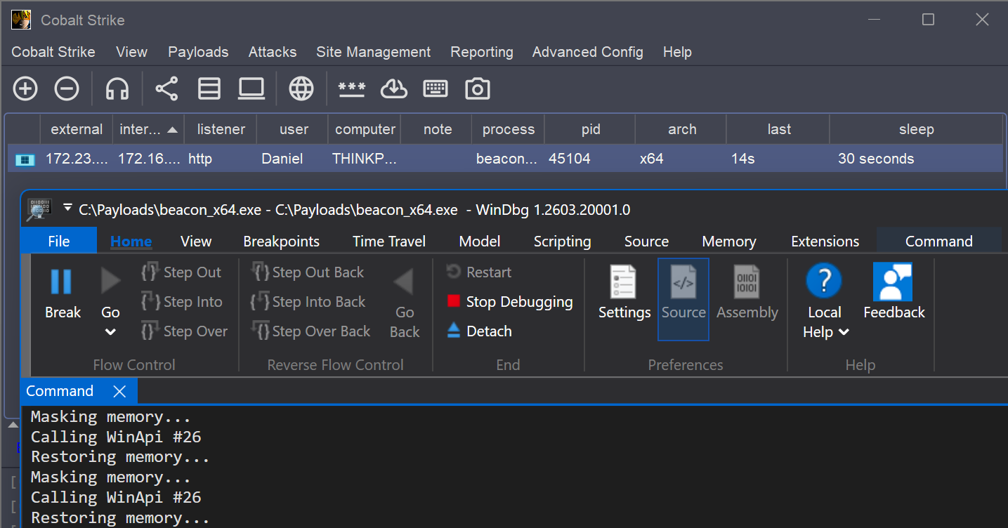 This works by hooking Beacon's IAT and redirecting API calls to functions within a memory-loaded PICO. These hook functions are where evasion tradecraft, like call stack spoofing, are implemented.